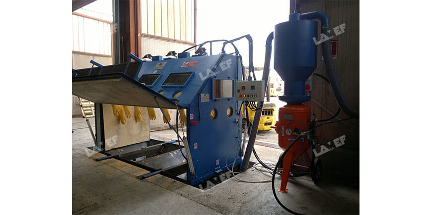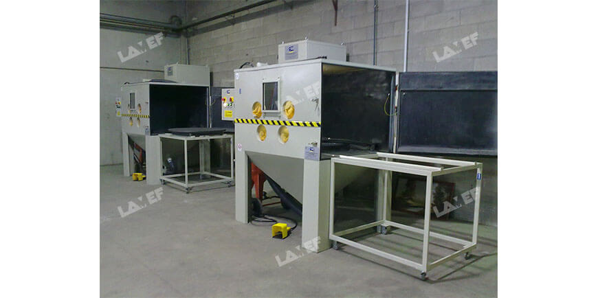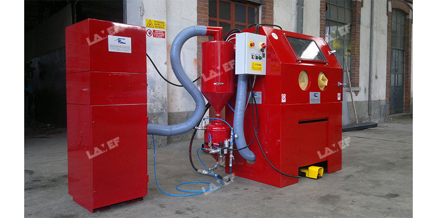 Sandblasting takes place by means of a lance which is connected to a tank containing the abrasive by means of a hose. The pressure of the tank pushes the abrasive up to the lance from which a jet of great power and high capacity of work comes out. With the same air consumption, the pressure booths have a 4 times higher yield than a corresponding suction machine. The use of metallic abrasive is possible and are therefore suitable for sandblasting, paint stripping and in all those applications where greater aggressiveness is required in the finishing of the pieces. All Lamef Pradman cabins can be equipped with numerous accessories.