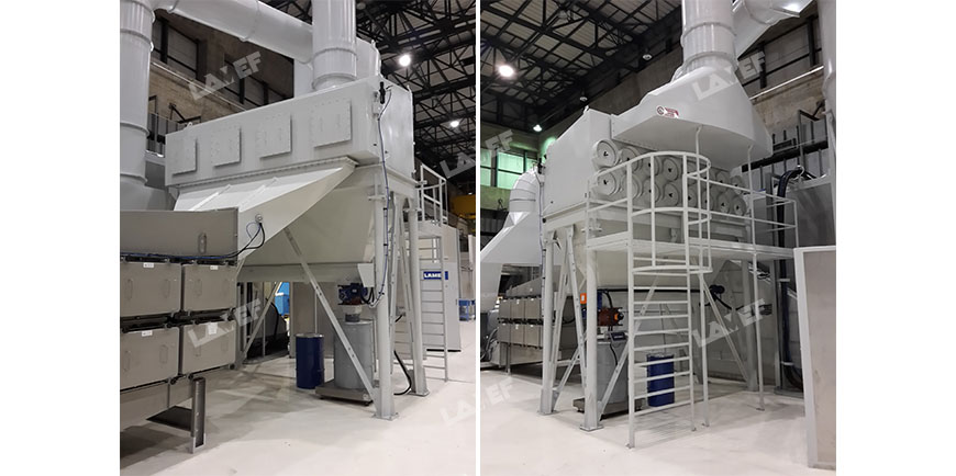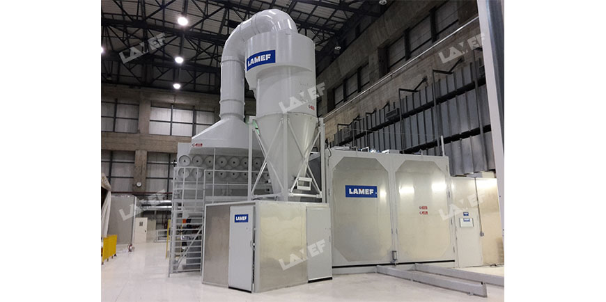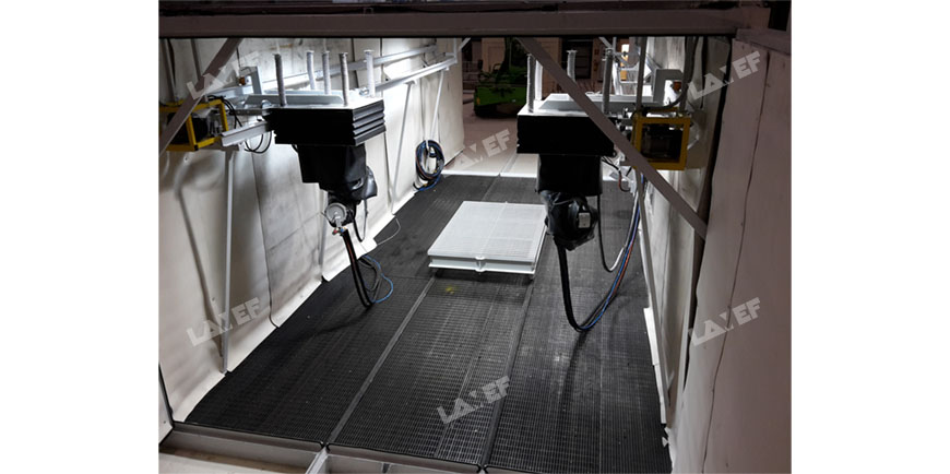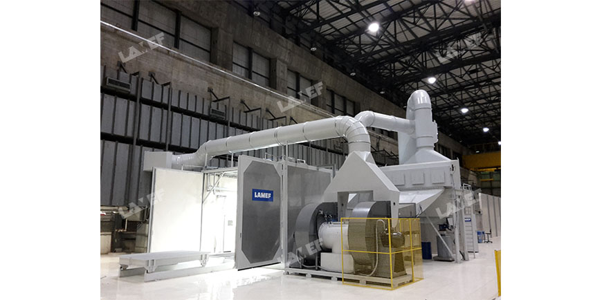 The suction system of the abrasive material and air filtration is designed to ensure the absolute tightness of the system to avoid the leakage of potentially radioactive dust.