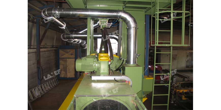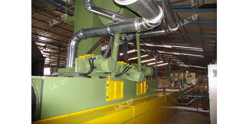 The pieces are loaded on a biconical roller conveyor at the entrance and are automatically introduced into the shot blasting machine.